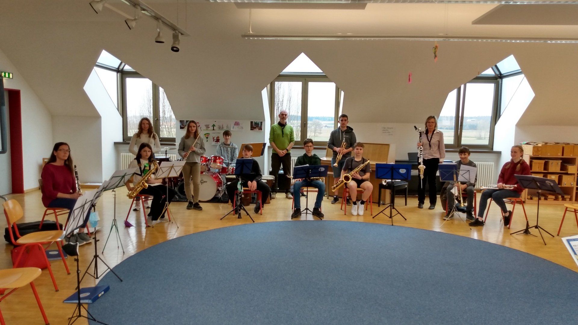ButtonWöchentliche Proben im Musikraum im Dachgeschoß der Schule St. Georgen